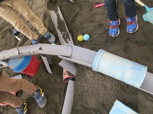 ただ並べていただけだった塩ビ管も坂道を作り出すための柱になっていてびっくり!