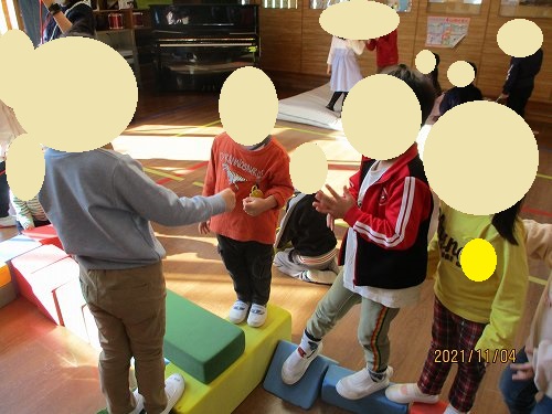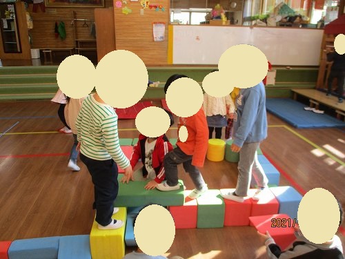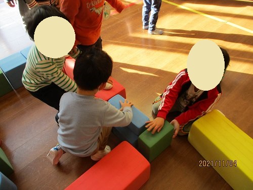 本日はホールで迷路作りをしていた様子をお伝えいたします。