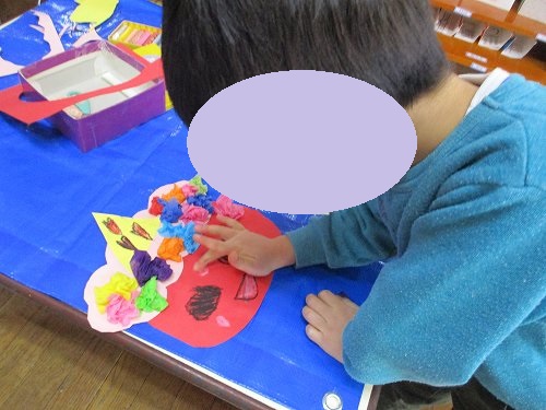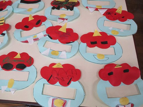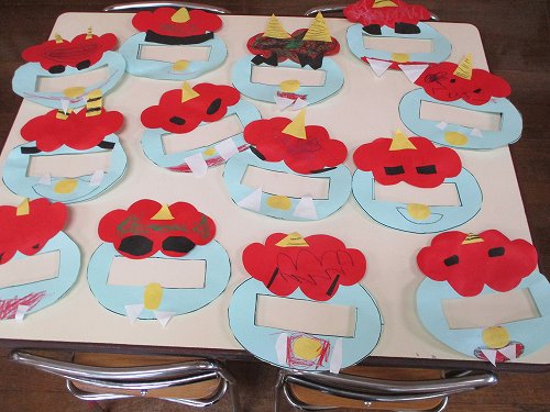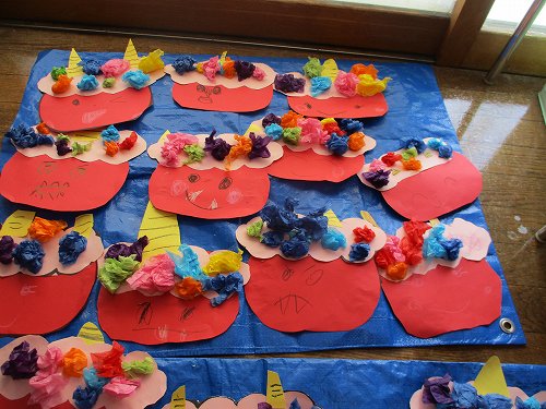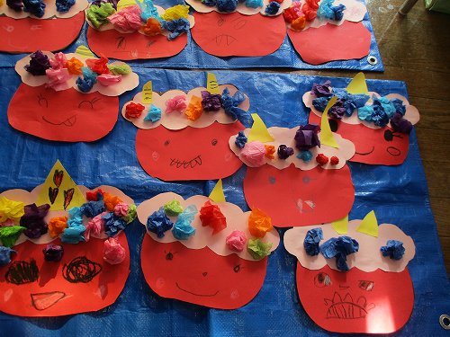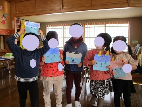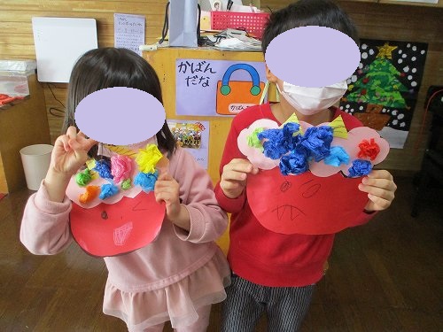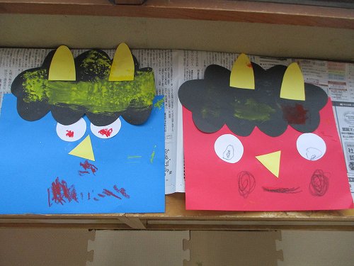 1月も後半に差し掛かり、各クラス、学年では節分に向けての製作が行われていました。