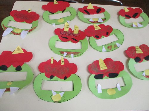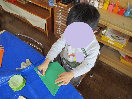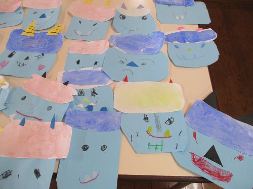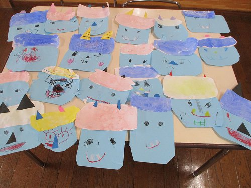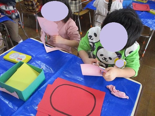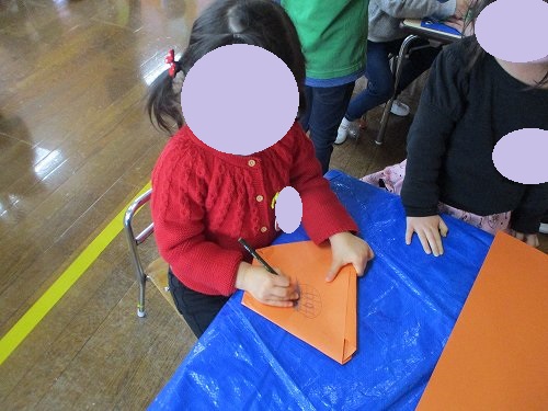 こちらはすずらん組の鬼のお面を作っている様子です。