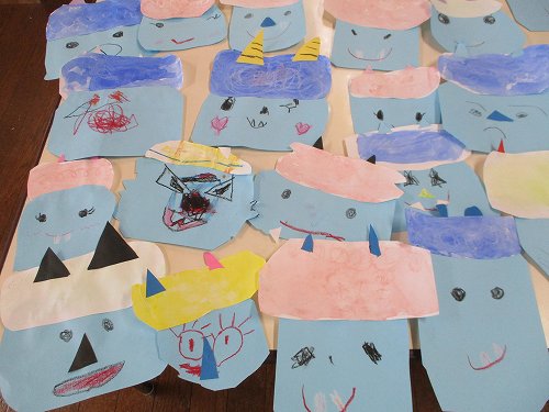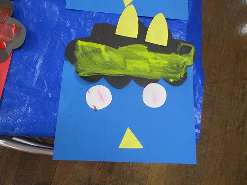 目と鼻をのりで貼り、可愛いお顔を描きました☆