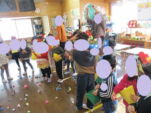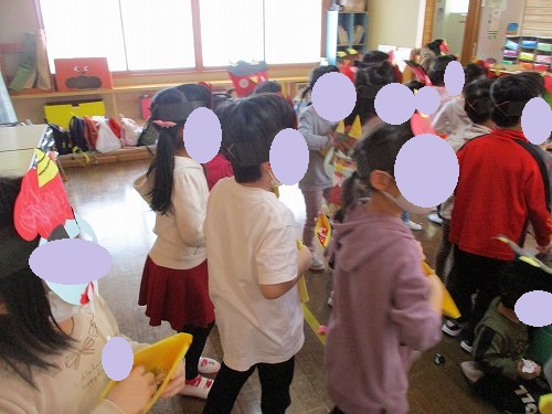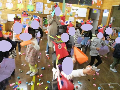 鬼さんが逃げていき、大喜びのすずらん組さんです!