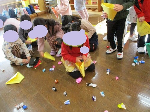 豆まきの後はしっかりと自分たちでまいた豆のお片付けをしました☆