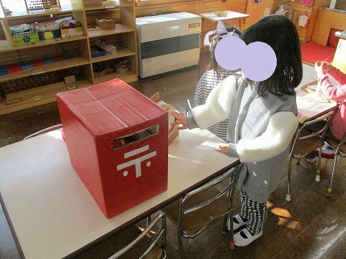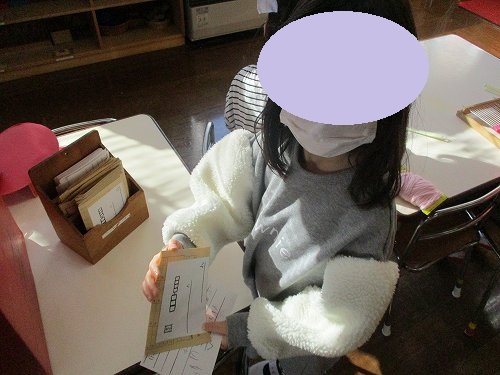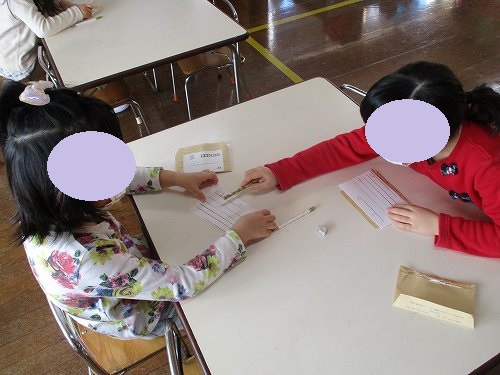 どうやら目の前にいるお友だちあてに書いていたようです。