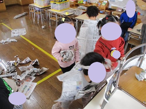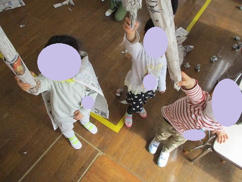 それぞれが新聞紙を持って楽しく遊んでいます!