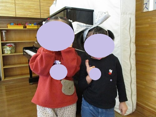 年少さんが新聞紙で遊んでいたのでそちらの様子をお伝えいたします。