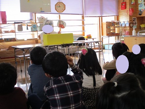 園長先生のお話を聞いた後は楽しいひなまつりのペープサートを見ました!