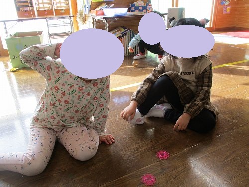 回すのがなかなか難しいのですが、こちらの年少さんの男の子たちは何度も何度も練習して回していましたよ!
