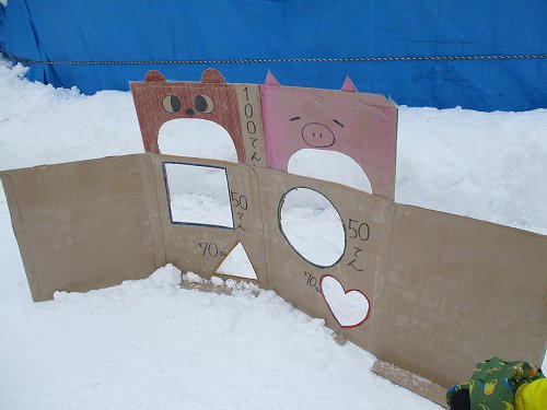 女の子たちもラインからはみ出さないように気を付けながら雪玉を投げていましたよ!