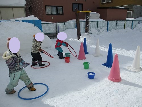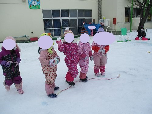 先週の金曜日は年中少児の園庭での雪あそびの日でした!