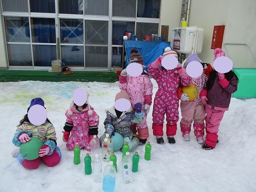 色水遊びをしたり、そり滑りをしたり、かけっこをしたり・・・