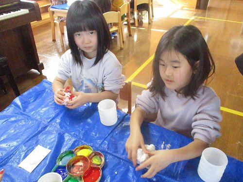 子どもたちは、どんな色にしようか、飾りは何を付けようか考えながら製作していました!