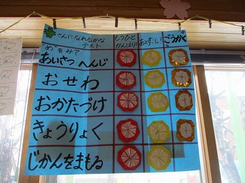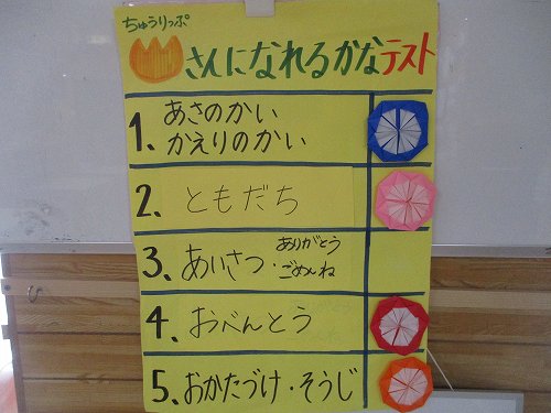 年中さんは「ねんちょうさんになれるかなテスト」。