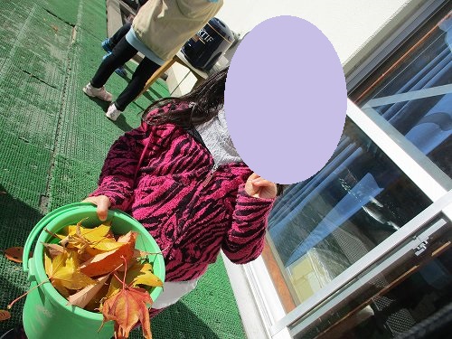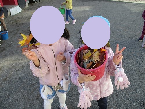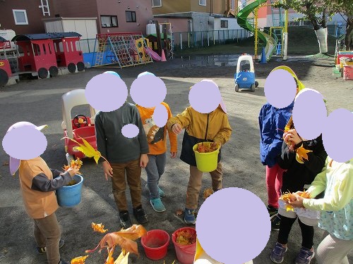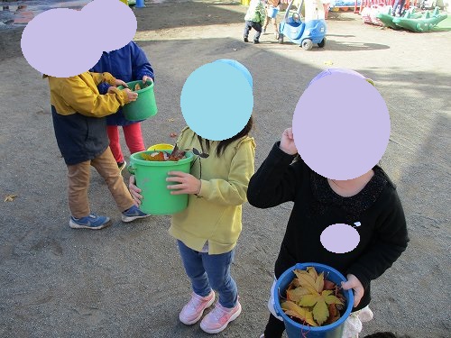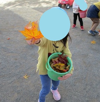 本日は園庭での落ち葉集めをしていた子どもたちの様子をお伝えいたします。