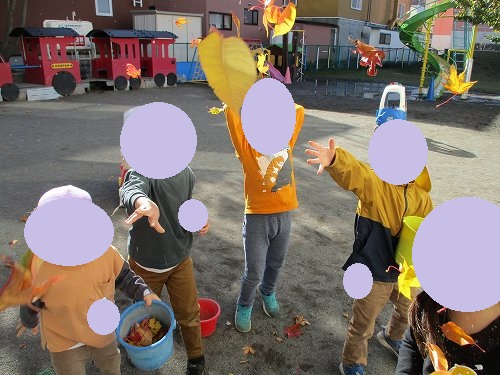 たくさん集めて空に向かって葉っぱを飛ばして楽しみました♪