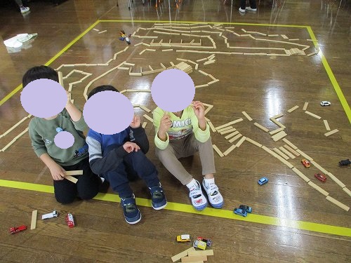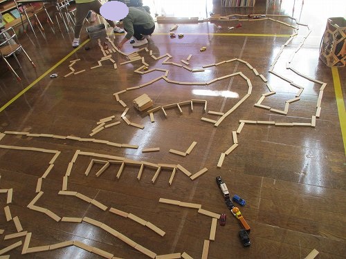 積み木のおもちゃ「カプラ」を使って、イメージを膨らませながら道路を作って楽しんでいました!