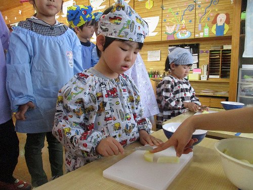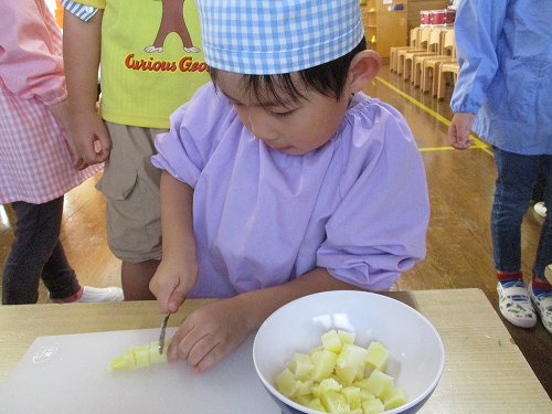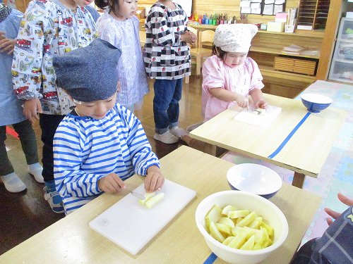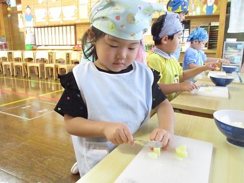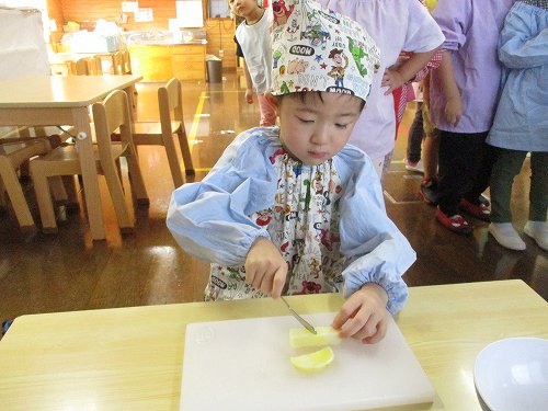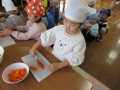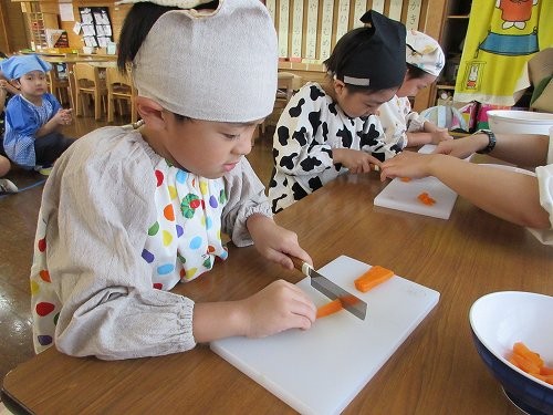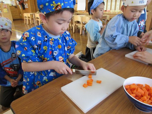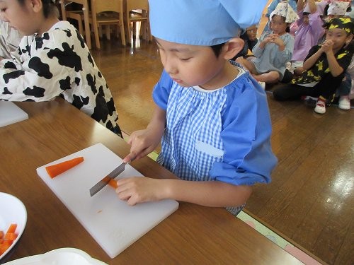 年長さんは本物の包丁を使って人参を切りました!