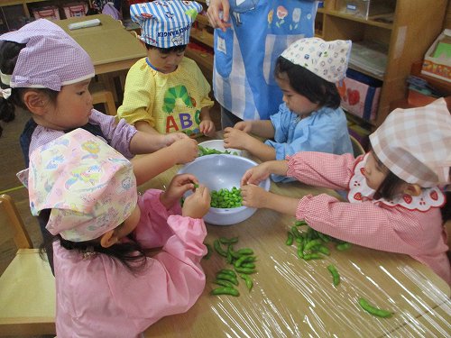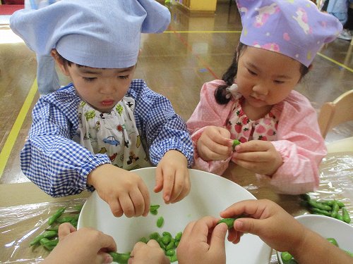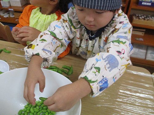 年少さんは枝豆の中身をさやから出してくれました!