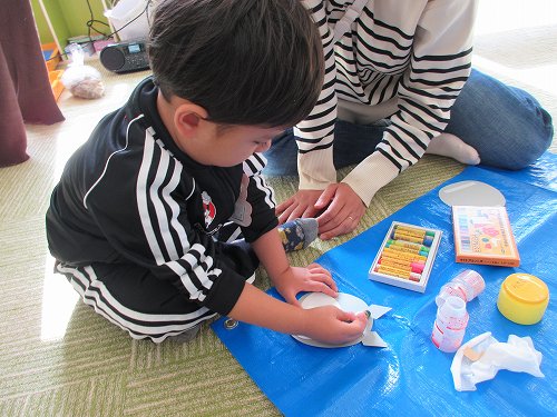 ○未就園児教室○ 2025年10月15日 本日は未就園児教室の様子をお届けいたします。 今回はどんぐりを使ったトトロのマラカスを作りました☆ のりでおなかの部分をぺったん! 顔を描いて・・・ おめめのシールをはがすのがなかなか難しかったね。 ヤクルトカップの中にどんぐりを入れて、テープでとめて完成!! 頑張って作りました~!! この後、みんなでマラカス演奏会をしました♪ 楽しかったね☆