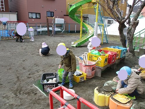 園庭では砂遊びや鬼ごっこで楽しんでいました☆