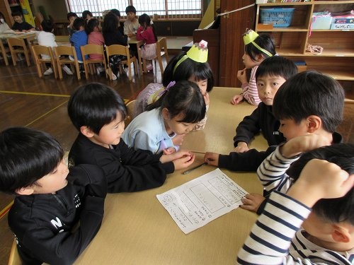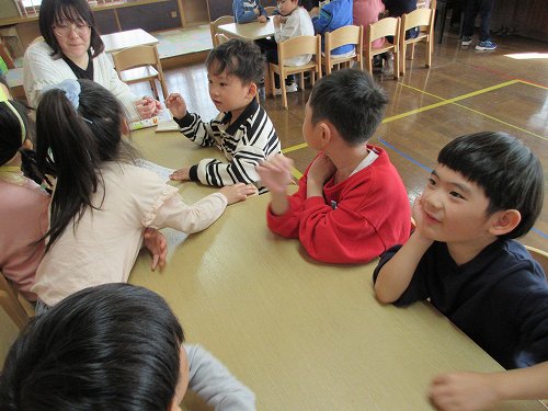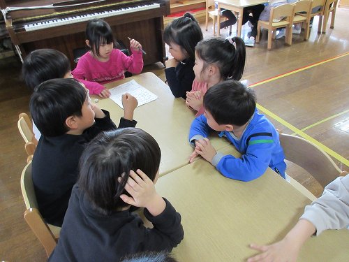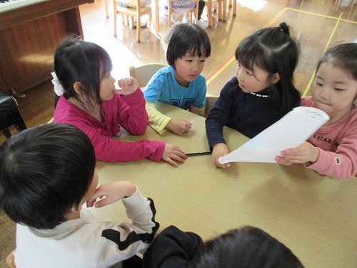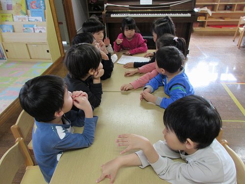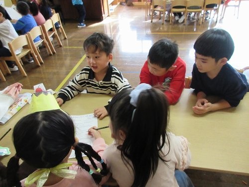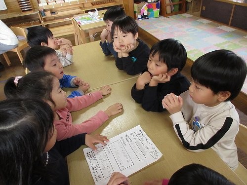 今回は年長さんのお店屋さんごっこの話し合いの様子をお届けいたします。