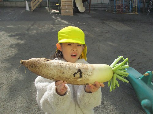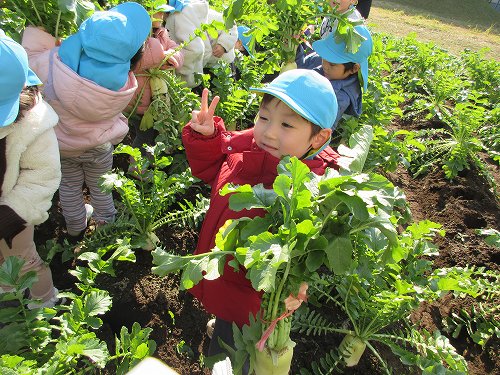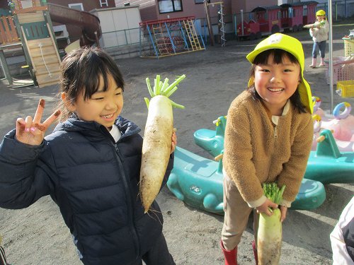 自分で抜いた大根を片手に嬉しそうな子どもたちです☆