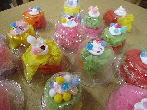 プリンカップを選んで、好きな色の紙を選んで・・・