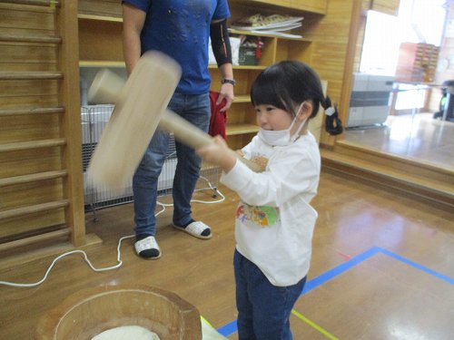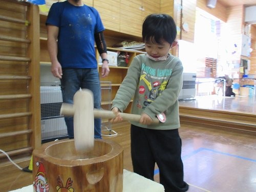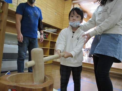 子臼でのもちつき体験も楽しそうに行ってくれました☆