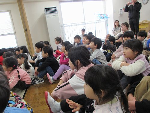 この日は南警察署の方に協力をしていただき、不審者が幼稚園に現れたらどうするかの訓練をしました。