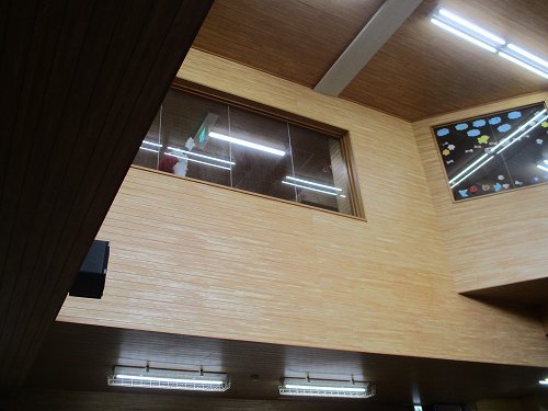 上を見てみると幼稚園の二階にサンタさんが!!!