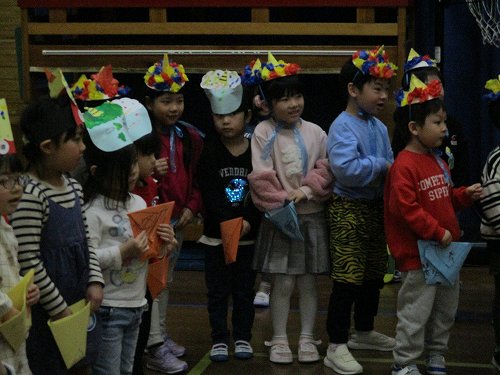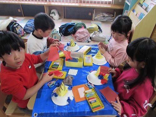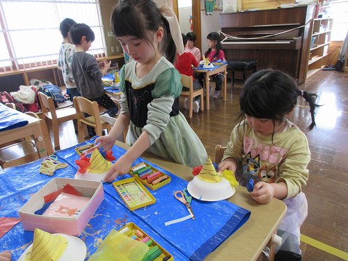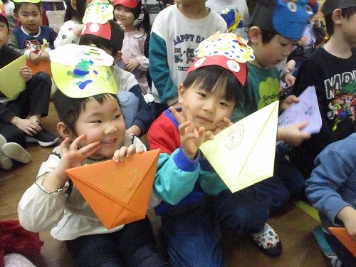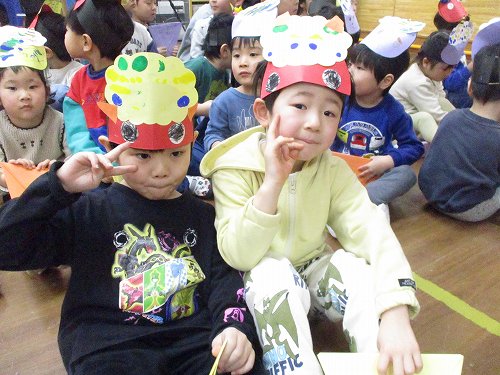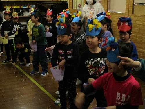 数日前から各クラスで鬼のお面や鬼の帽子を作成して、当日の準備をしていました!