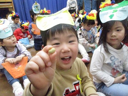 節分の豆まきを通して自分の中にいる悪い鬼さん(怒りんぼ鬼、泣き虫鬼、病気鬼等…)を追い払うというものです。
