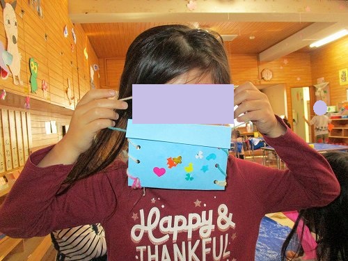 本日は年中さんのお店屋さんごっこのカバン作りの様子をお伝えいたします。
