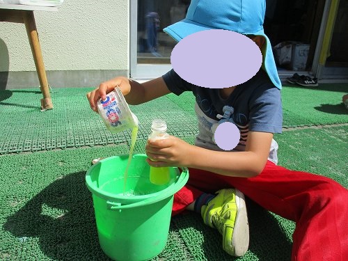 子どもたちの中で「泡づくり」が流行していますが、ジュース作りも流行しております。