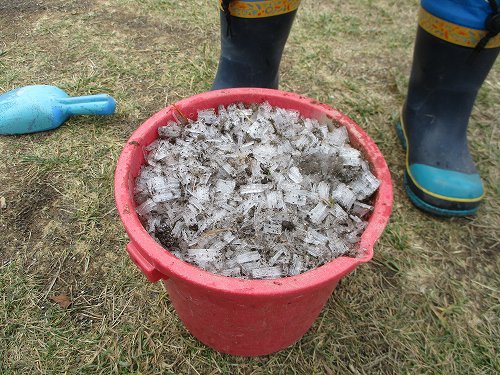 見せに来てくれたバケツの中には霜柱がいっぱい!