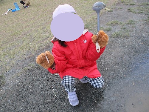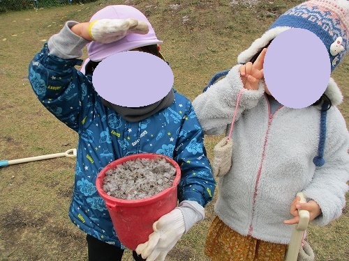 霜柱を発見すると目がキラキラさせて、さっそくバケツに集めだしました!