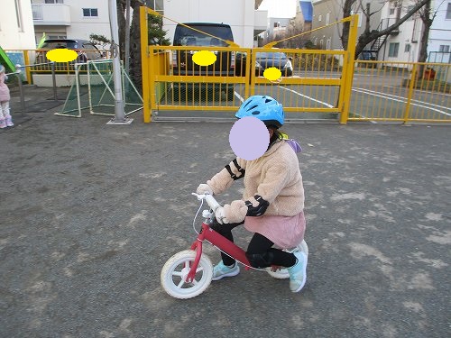 以前、お便りでもお知らせしていましたキックバイクですが、年長さんを中心に園庭で遊んでいます。