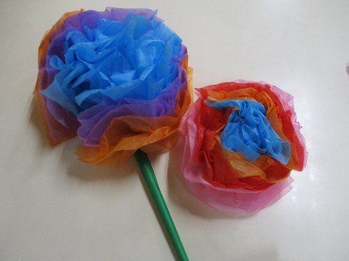 折り紙を巻いてお花の葉っぱを作って…