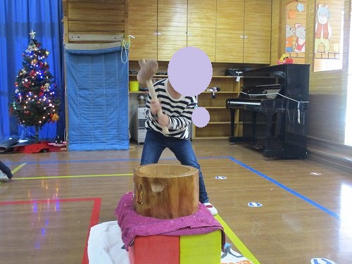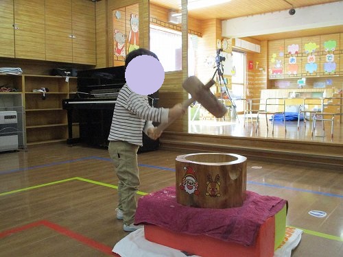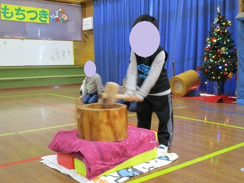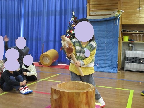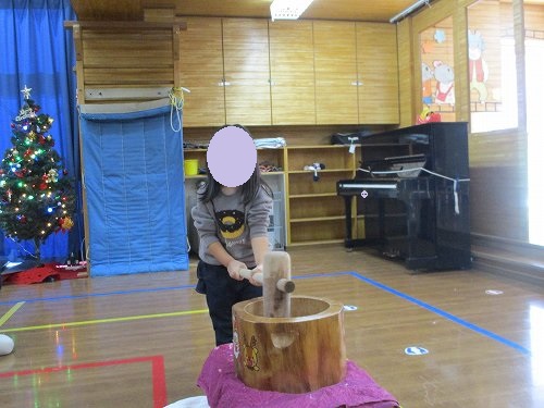 「よいしょー!!」とおもちをつくタイミングでみんなで掛け声をかけて応援しました♪