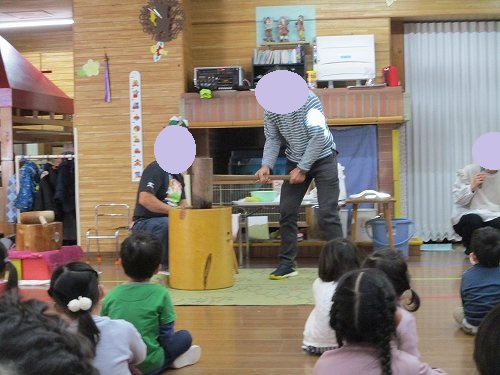 子どもたちはバスの先生のおもちをつく姿に目をキラキラさせて見ていましたよ!