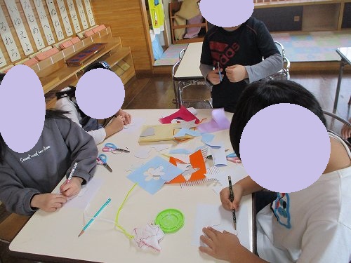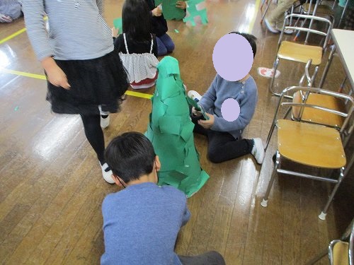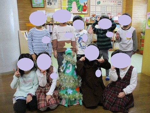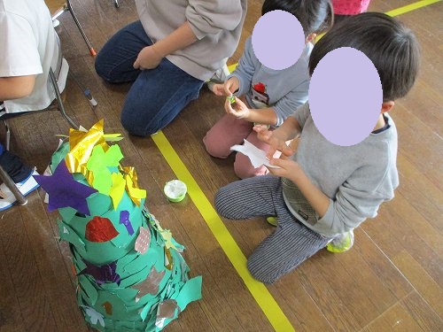 「あのね、今日ツリー作ったの~」と言いたい気持ちを抑えていた年長さんたちでした。笑