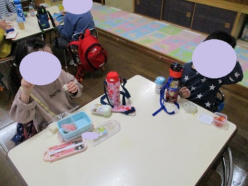 いつもとは違うクラス・学年のお友だちと、いつもとは違う場所(違うクラス・ホール等)でお弁当を食べます♪