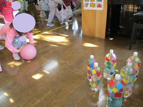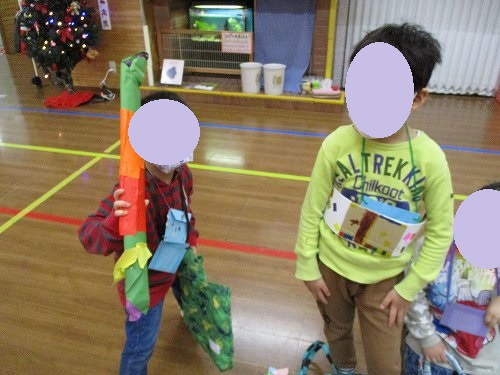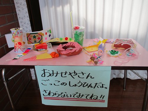 お店屋さんごっこの一週間前から幼稚園のホールにはお店屋さんごっこの商品の見本が展示されていました♪