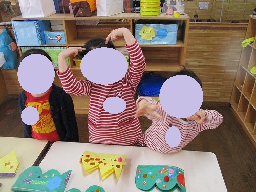 年長さんはどの商品を作るのか、というところからのスタートでクラスのお友だちとの協力もあり、たくさんの成長を遂げたお店屋さんごっこでした♪