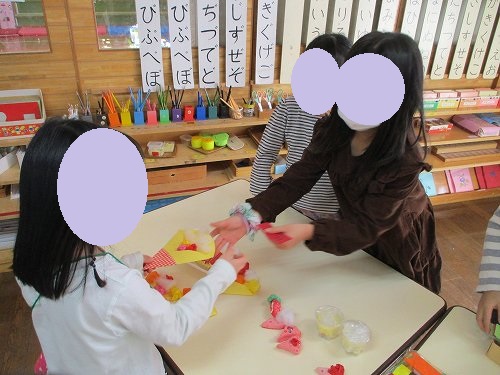お店屋さんごっこでは前半と後半で売り手・買い手が入れ替わる方式で行われます。