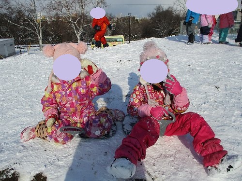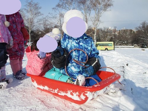 ドキドキしながら高い山からそり滑りを楽しんでいました☆