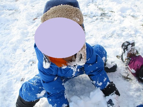 雪だるま作りをしていたはずが自分が雪まみれになってしまっている子も…。