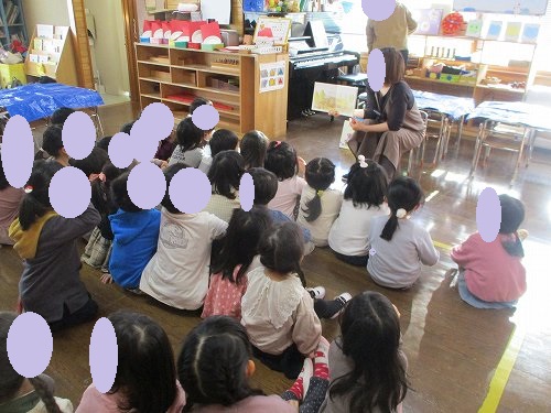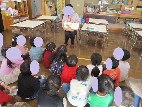 本日は保護者の方(絵本サークルの方)が子どもたちに絵本の読み聞かせをしてくれる「絵本読み聞かせ」の日でした。
