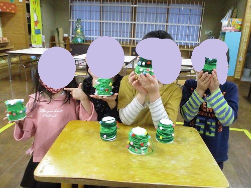 「それで何作るの?」と聞くと「クリスマスツリー!!」と答え満面の笑みを見せてくれました。