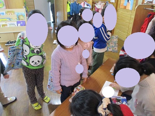 子どもたちが好きな絵本を図書コーナーから借りてお家でご家族の皆様と楽しめる良い機会となっています!